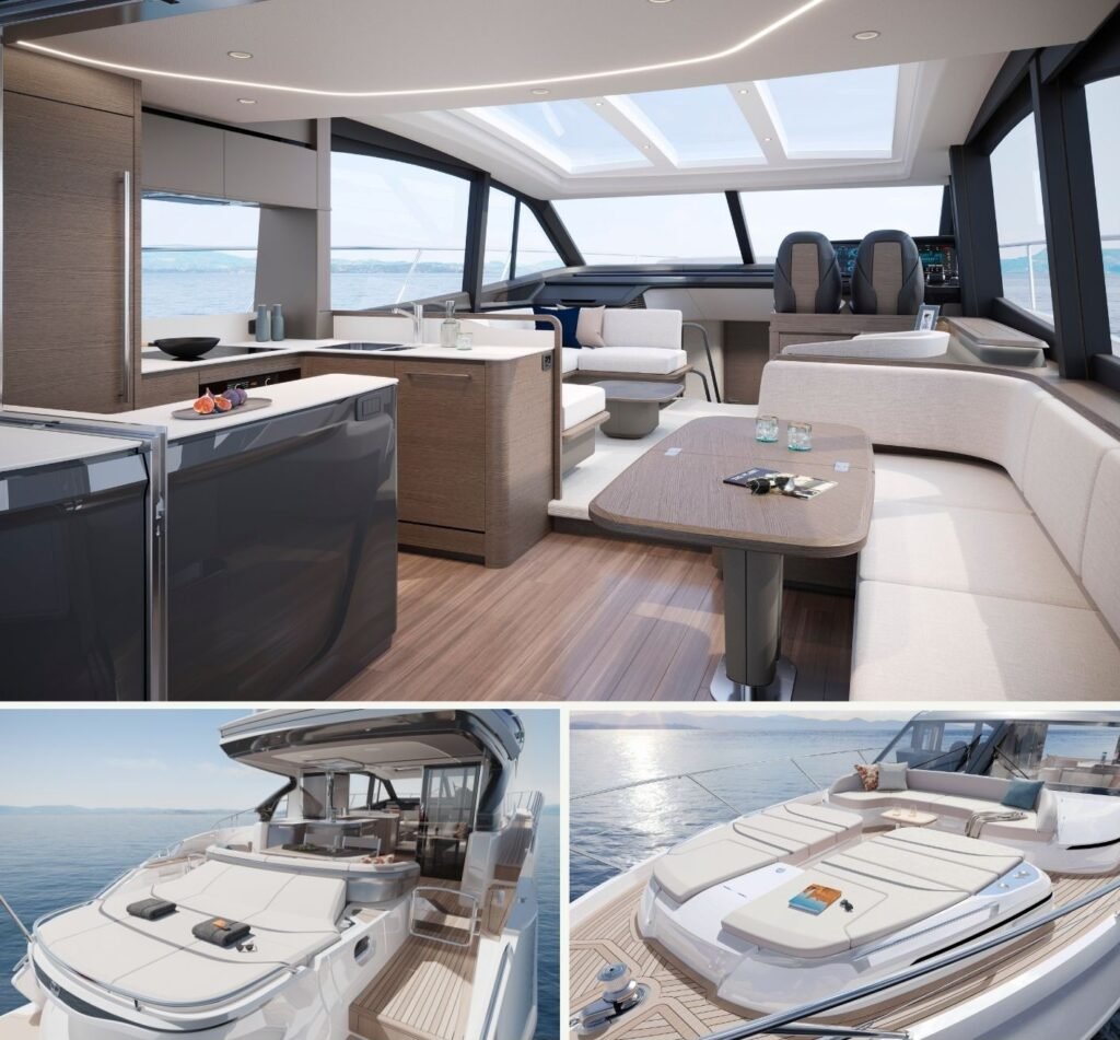 Misafir alanını maksimize etmek için tasarlanmış flybridge’inden huzurlu ön güverte ‘teras’ına kadar, F58’in her detayı sosyalleşme ve rahatlama düşünülerek tasarlandı. İç mekanda ise çağdaş ancak zamansız bir stil, geniş ve uyumlu bir his yaratmak için tüm alana yayılıyor.