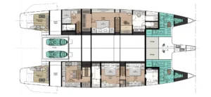 Sunreef 100 Eco versiyonu, entegre kompozit güneş panelleri (45,1 kWp’ye kadar) ve yeni nesil elektrikli batarya gruplarıyla donatıldı.
