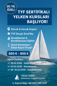 Türkiye’nin öncü denizcilik firmalarından Yeni Vira Denizcilik, iki on yıllık deneyimini, Türkiye Yelken Federasyonu (TYF) iş birliğiyle hayata geçirdiği özel eğitim programlarına taşıyor. Mart 2026’da Göcek ve büyüleyici koylarında start alacak program, deniz tutkunları için hem bir eğitim hem de bir yaşam fırsatı sunuyor.
